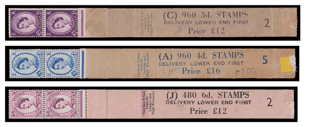 The minimum Inland Letter Rate increased from 2½d to 3d in Oct 1957, resulting in 3d rolls (CS) being changed to continuous printing, and the change of roll (U) from 2½d to 3d.