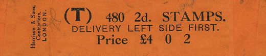 Rolls in multiples of 240, which seems sensible as there were 240 pennies to the pound, were first issued for sideways delivery in 1920 (PONT). The corresponding (HFMS) rolls were discontinued at the same time. These discontinued letters (CAJ) and (HFMS) were later reused for higher denomination rolls.