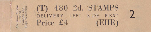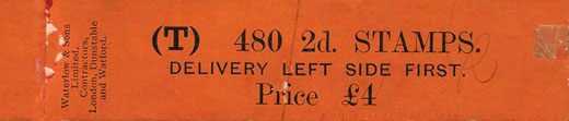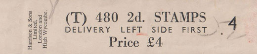 When Waterlow took over the printing contract in 1924, the remaining letters (DBKQ) and (GELR) were changed to 960 and 480 stamps respectively.